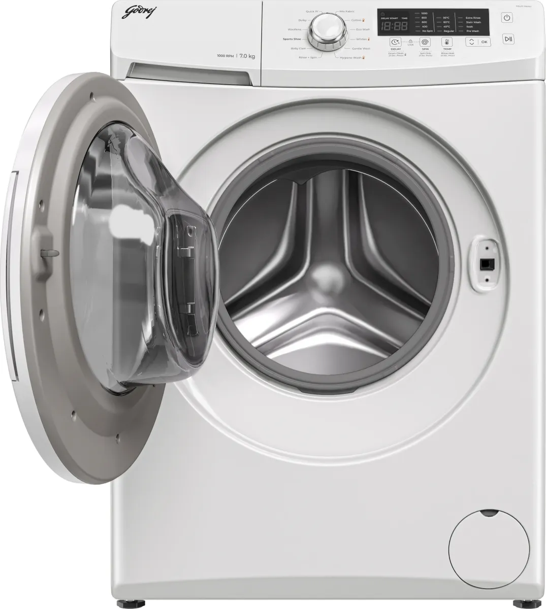 The Godrej WFEON CRS 7010 7 kg Fully Automatic Front Load Washing Machine is a Washing Machine with Dryer. Capacity: 7 kg. Energy rating: 5 star. Brand: Godrej.