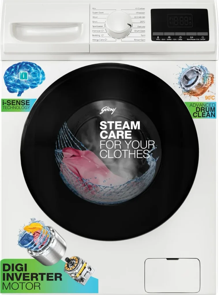 20 Degree Celsius, i-Sense Technology, Inbuilt Heater 95 Degree Celsius, 16 Wash Programs, Steam Wash, Hexa-Scrub Drum, Pause To Add Items, Delay Start