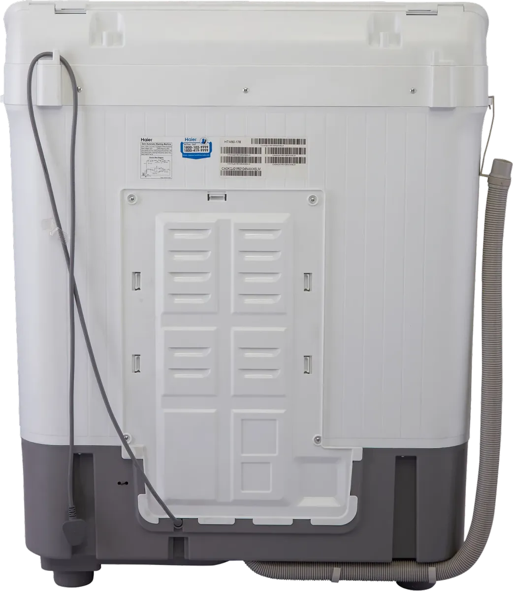 The Haier HTW80-178 8 Kg Semi Automatic Washing Machine is a Washing Machine with Dryer. Capacity: 8 kg. Energy rating: 5 star. Brand: Haier.