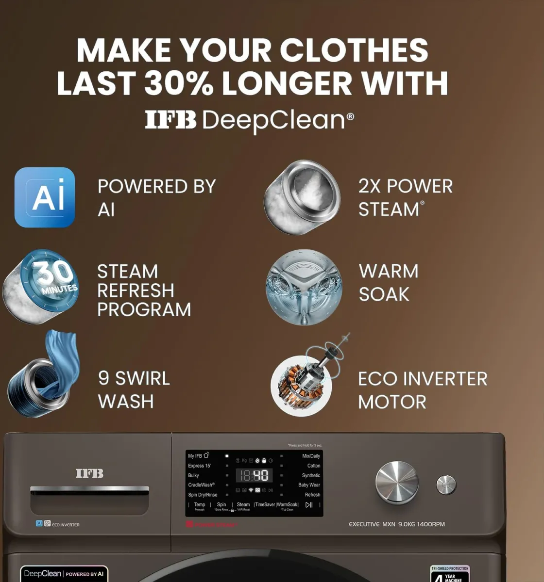 4 years, Comprehensive Warranty and 10 Years Spare Part Support From IFB
