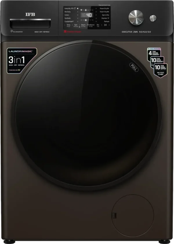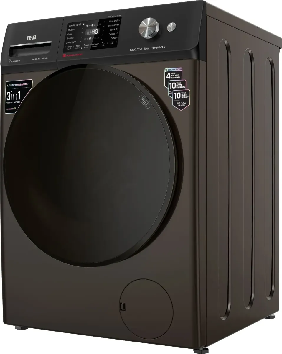 The IFB Executive ZMN 9 kg Fully Automatic Front Load Washing Machine is a Washing Machine with Dryer. Capacity: 9 kg. Brand: IFB.