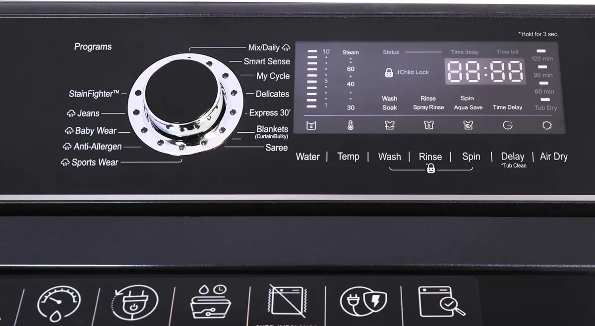 The IFB TL-S4RBS 9 Kg Fully Automatic Top Load Washing Machine is a Washing Machine with Dryer. Capacity: 9 kg. Energy rating: 5 star. Brand: IFB.