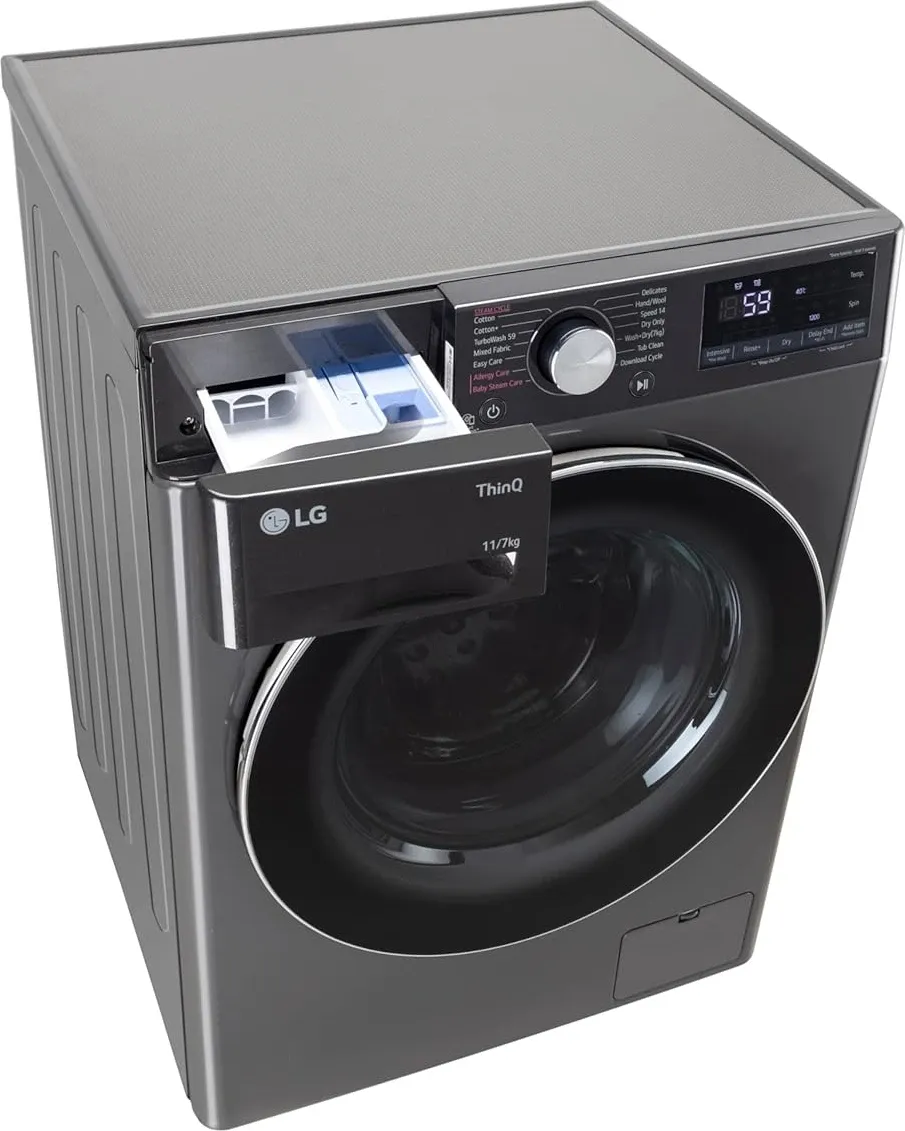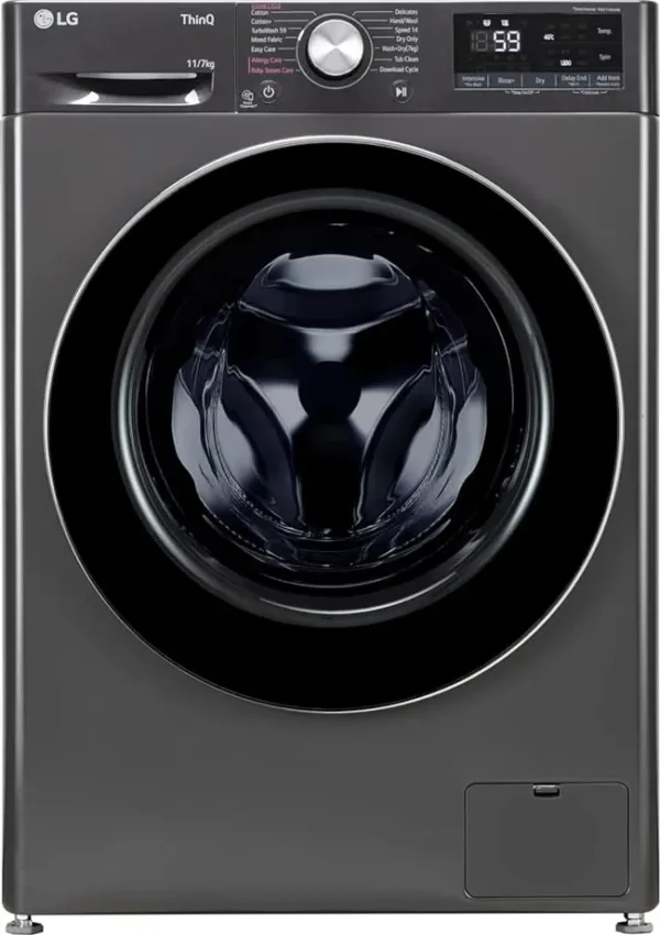The LG FHD1107SWM 11 Kg Fully Automatic Front Load Washing Machine is a Washing Machine with Dryer. Capacity: 11 kg. Energy rating: 5 star. Brand: LG.