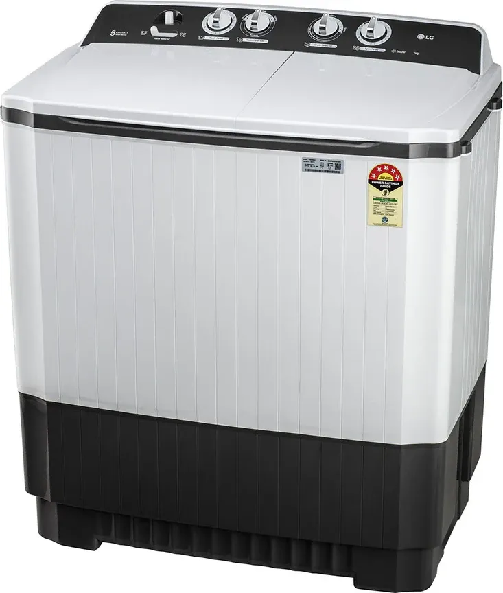 The LG P7010NGAZ 7 Kg Semi Automatic Washing Machine is a Washing Machine with Dryer. Capacity: 7 kg. Energy rating: 5 star. Brand: LG.