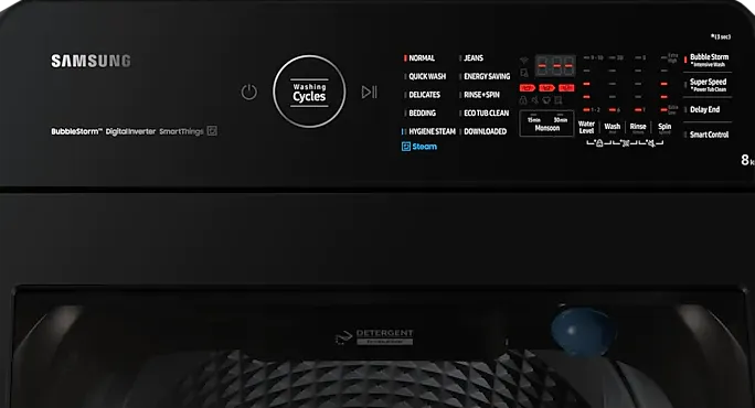The Samsung Ecobubble WA80BG4686BR 8 kg Fully Automatic Top Load Washing Machine is a Washing Machine with Dryer. Capacity: 8 kg. Energy rating: 5 star. Brand: Samsung.