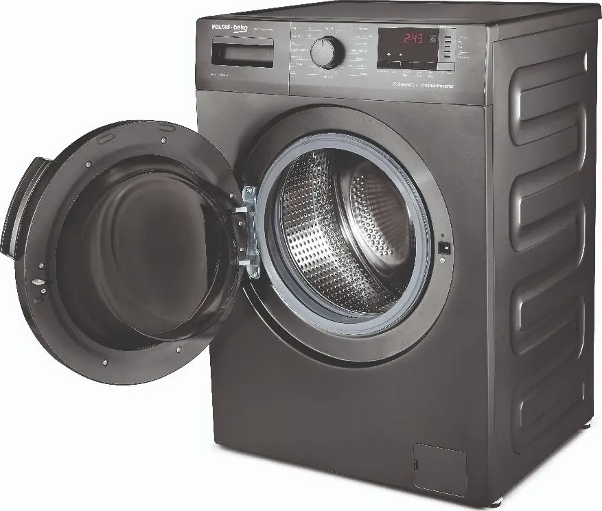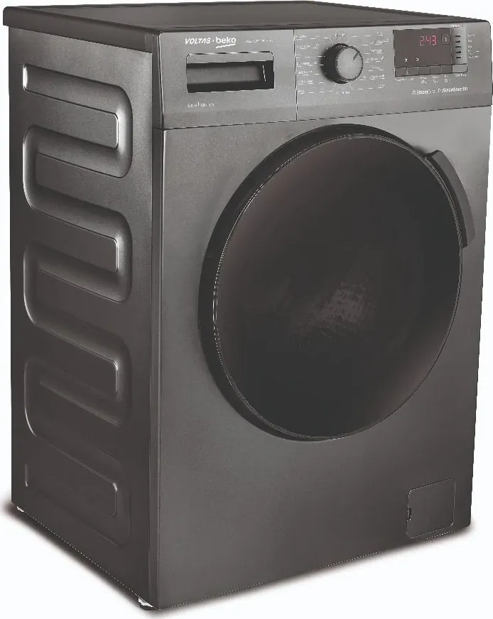 The Voltas Beko WFL8012B7JVBKA/AXV 8 kg Fully Automatic Front Load Washing Machine is a Washing Machine with Dryer. Capacity: 8 kg. Energy rating: 5 star. Brand: Voltas Beko.