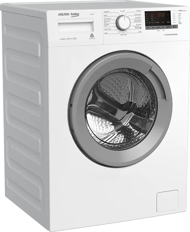 The Voltas Beko WFL6510VPWS 6.5 kg Fully Automatic Front Load Washing Machine is a Washing Machine with Dryer. Capacity: 6.5 kg. Energy rating: 5 star. Brand: Voltas.