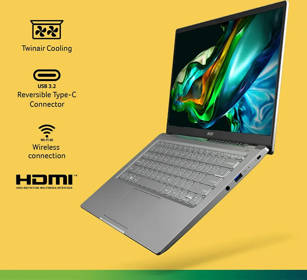 The Acer Swift Go 14 SFG14-41 NX.KG3SI.008 Laptop (AMD Ryzen 7 7730U/ 16GB/ 1TB SSD/ Win11) is a laptop. Processor: 7th Gen AMD Ryzen 7 7730U. RAM: 16 GB. Storage: 1 TB SSD. Brand: Acer.