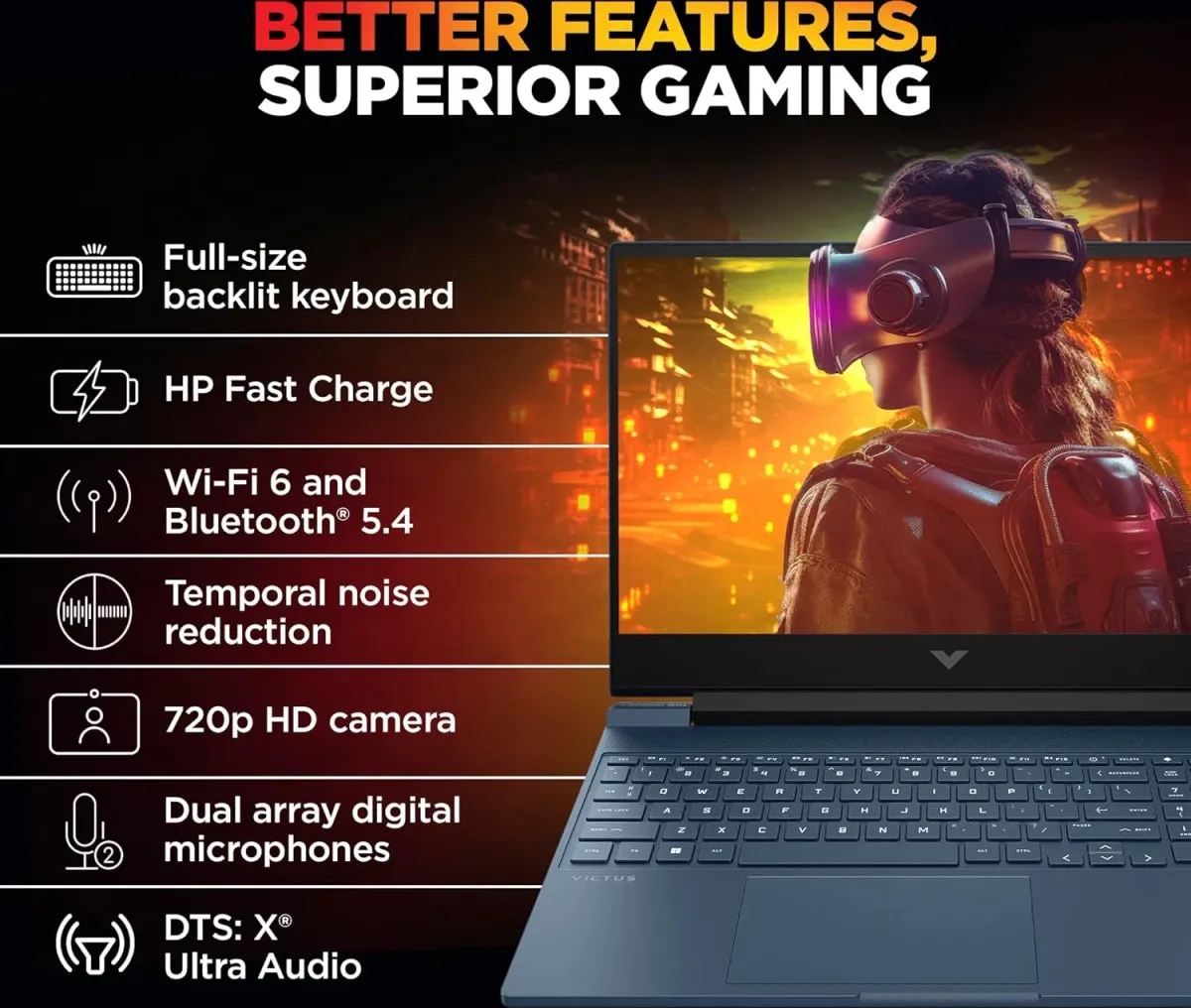 The HP Victus 15-fb3009AX Gaming Laptop (AMD Ryzen 5 8645HS/ 16GB/ 512GB SSD/ Win11/ 6GB Graph) is a laptop. Processor: 8th Gen AMD Ryzen 5 8645HS. RAM: 16 GB DDR5. Storage: 512 GB SSD. Brand: HP.
