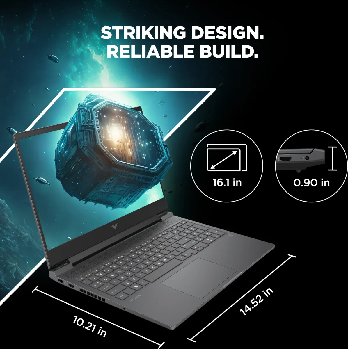 The HP Victus 16-r1705TX Gaming Laptop (14th Gen Core i5/ 16GB/ 512GB SSD/ Win11 Home/ 6GB RTX3050 Graph) is a laptop. Processor: 14th Gen Intel Core i5 14450HX. RAM: 16 GB DDR5. Storage: 512 GB SSD. Brand: HP.
