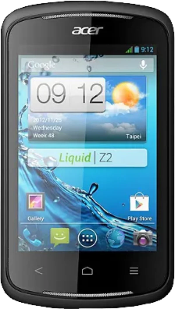 The Acer Liquid Z2 Dual is a Smartphone. Brand: Acer. RAM: 512 MB. Storage: 4 GB. Battery: 1300 mAh, Li-ion Battery. OS: Android v4.1.1 (Jelly Bean).