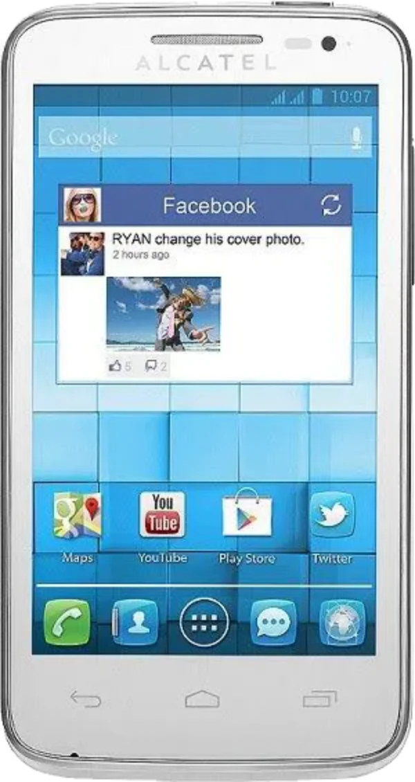 The Alcatel One Touch M Pop is a Smartphone. Brand: Alcatel. RAM: 512 MB. Battery: 1500 mAh, Li-ion Battery. OS: Android v4.1 (Jelly Bean).