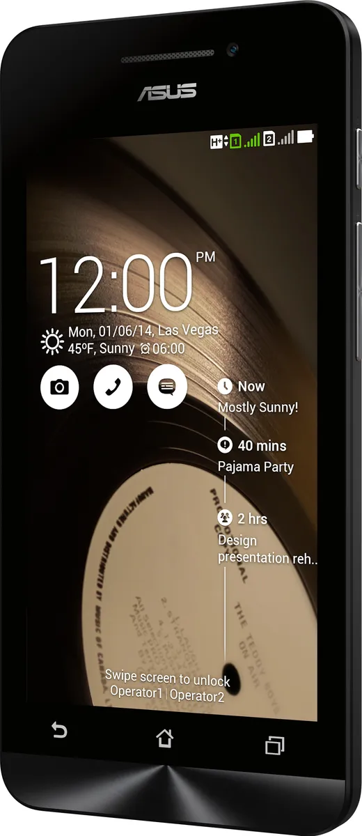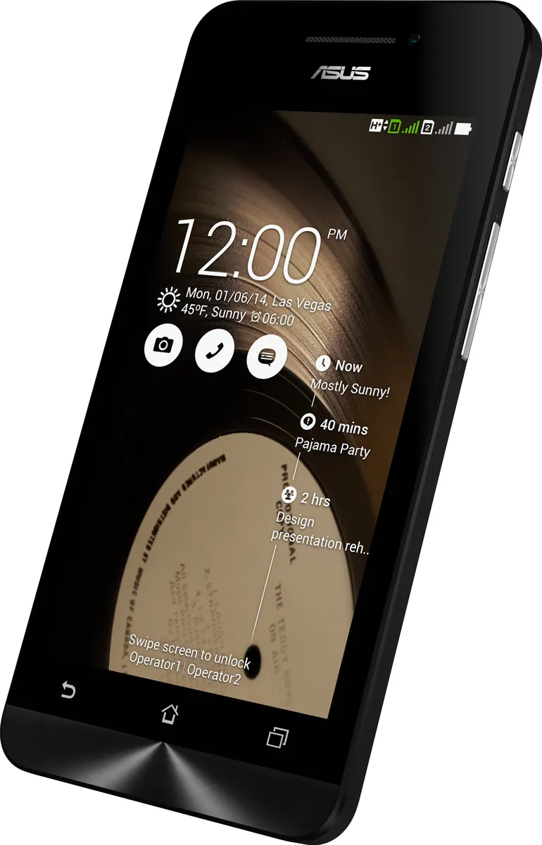 The Asus Zenfone 4 A450CG is a Smartphone. Brand: Asus. RAM: 1 GB. Storage: 8 GB. Battery: 1750 mAh, Li-Po Battery. OS: Android v4.4.2 (KitKat).