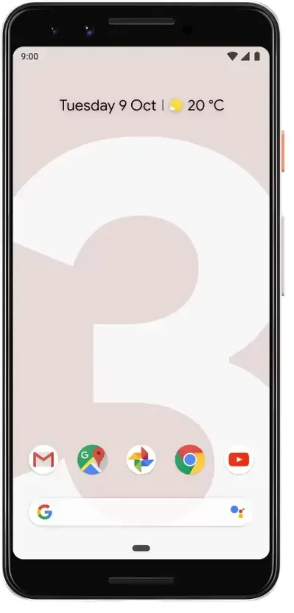 The Google Pixel 3 is a Smartphone. Brand: Google. RAM: 4 GB. Storage: 128 GB. Battery: 2915 mAh, Li-Po Battery. OS: Android v9.0 (Pie).