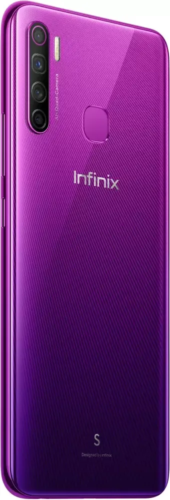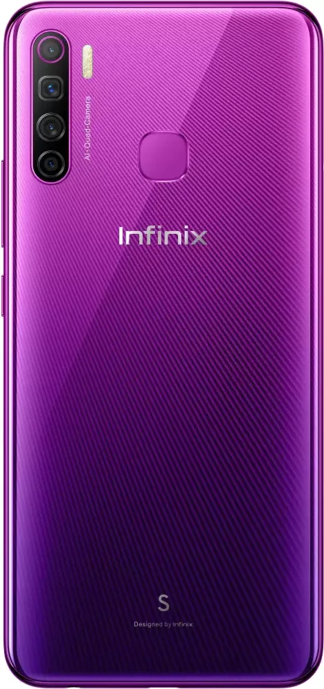 The Infinix S5 is a Smartphone. Brand: Infinix. RAM: 4 GB. Storage: 64 GB. Battery: 4000 mAh, Li-ion Battery. OS: Android v9 (Pie).