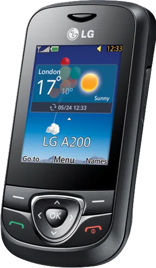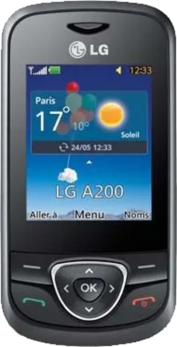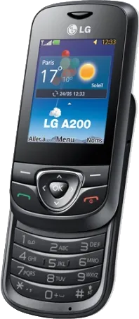 The LG A200 is a Smartphone. Brand: Lg. RAM: 64 MB. Battery: 2.2 inches, 176 x 220 pixels.