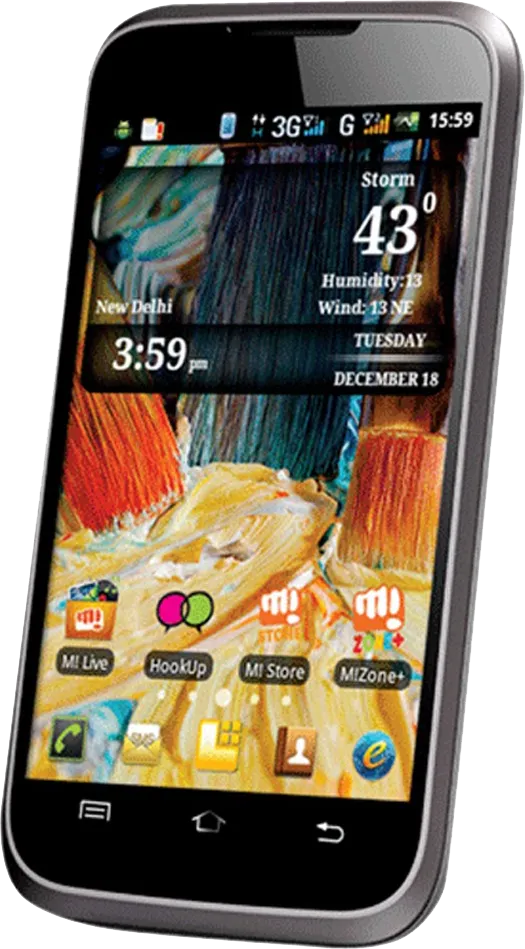 The Micromax A54 Smarty 3.5 is a Smartphone. Brand: Micromax. RAM: 256 MB. Storage: 130 MB. Battery: 1300 mAh. OS: Android v2.3.5 (Gingerbread).
