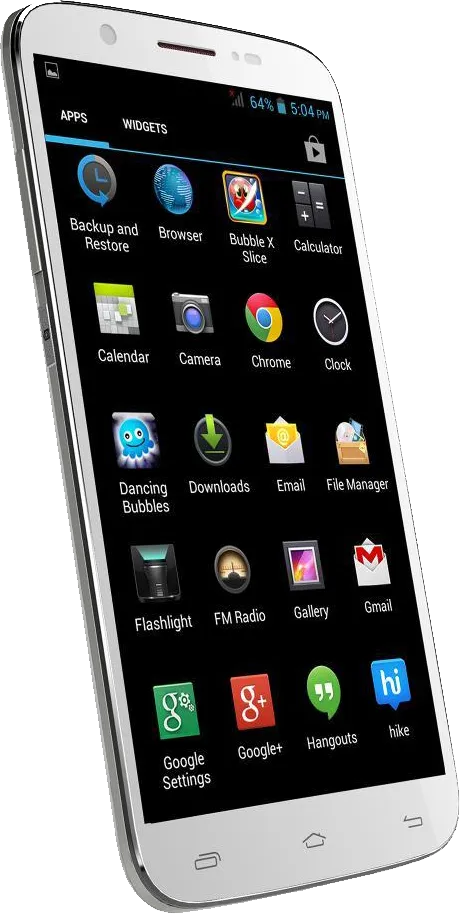 The Micromax Canvas XL A119 is a Smartphone. Brand: Micromax. RAM: 1 GB. Storage: 1.7 GB. Battery: 2450 mAh, Li-ion Battery. OS: Android v4.2 (Jelly Bean).