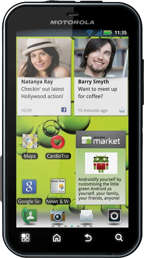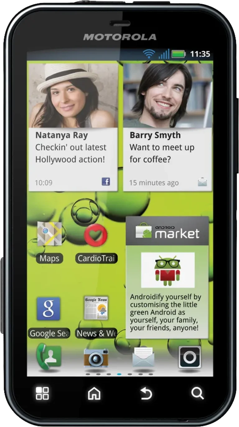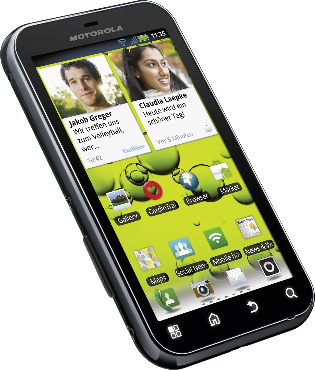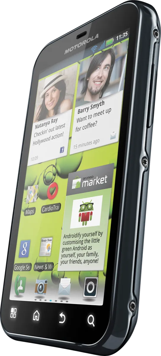 The Motorola Defy Plus is a Smartphone. Brand: Motorola. RAM: 512 MB. Storage: 2 GB. Battery: 1700 mAh. OS: Android v2.3 (Gingerbread).