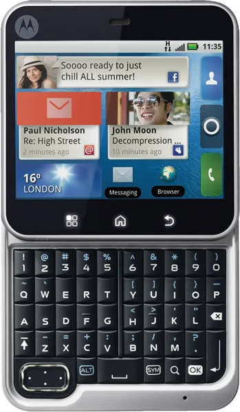 The Motorola Flipout MB511 is a Smartphone. Brand: Motorola. RAM: 512 MB. Storage: 150 MB. Battery: 1130 mAh, Li-ion Battery. OS: Android v2.1 (Eclair).