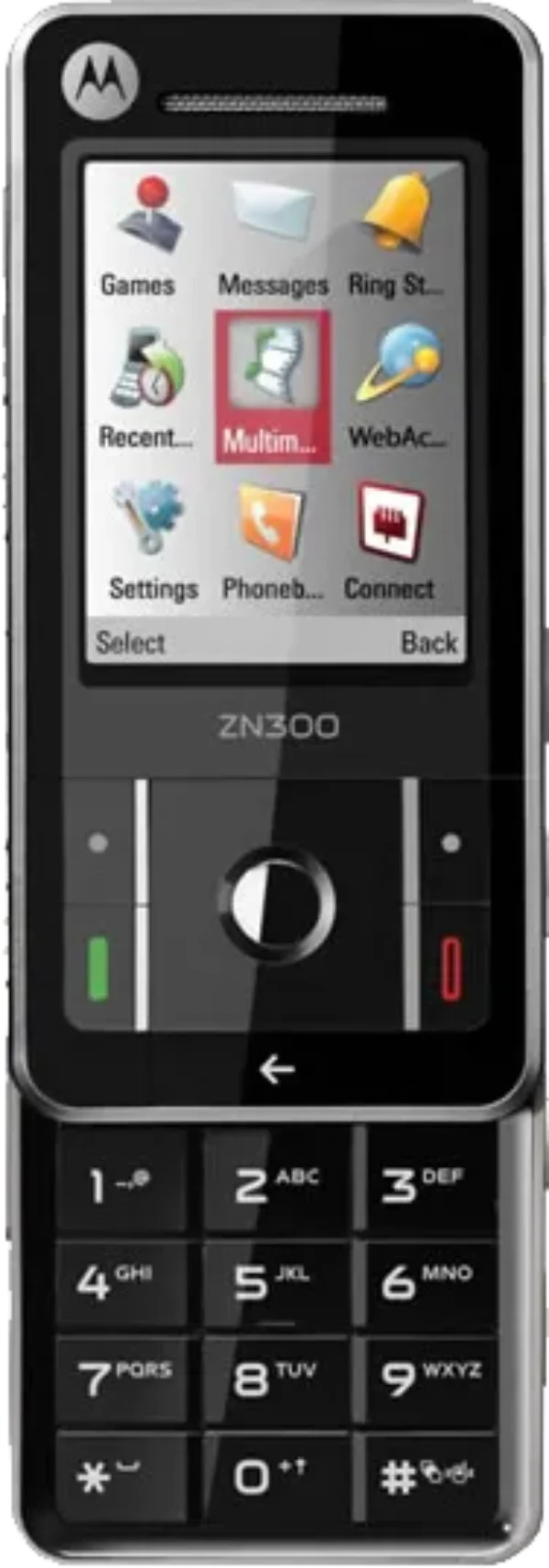 The Motorola ZN300 is a Smartphone. Brand: Motorola. Storage: 8 MB. Battery: 940 mAh, Li-ion Battery.