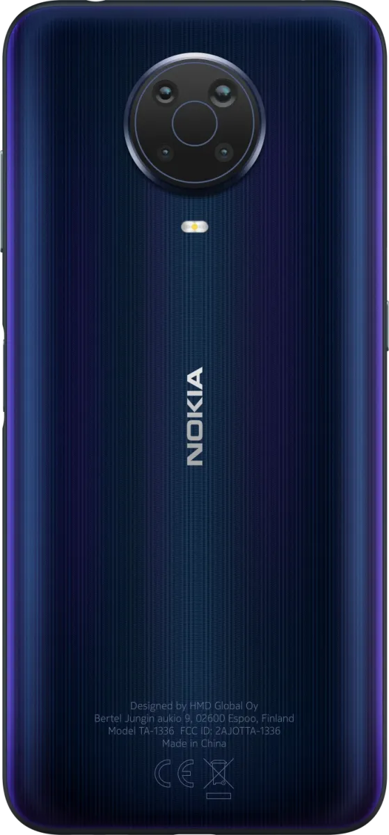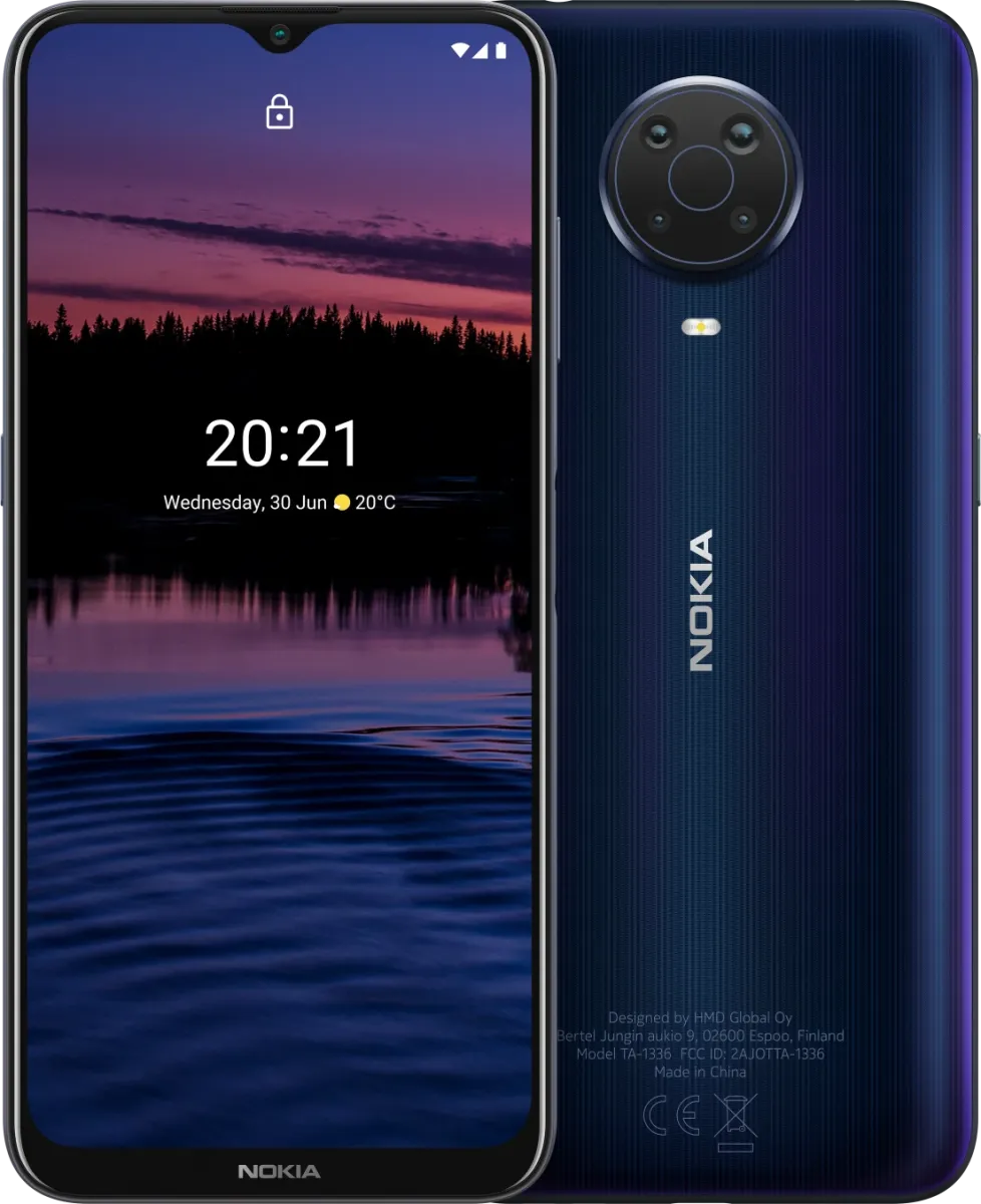 The Nokia G20 is a Smartphone. Brand: Nokia. RAM: 4 GB. Storage: 64 GB. Battery: 5050 mAh, Li-Po Battery. OS: Android v11.