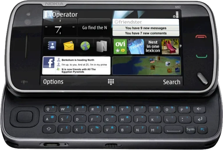 The Nokia N97 is a Smartphone. Brand: Nokia. RAM: 128 MB. Storage: 32 GB. Battery: 1500 mAh, Li-ion Battery. OS: Symbian v9.4.
