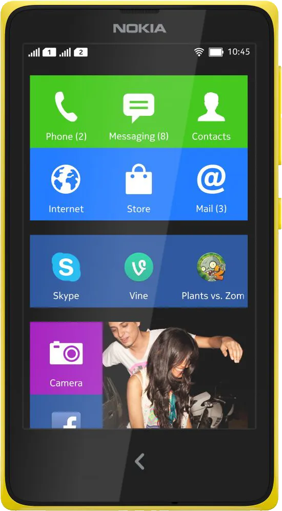 The Nokia X Dual Sim is a Smartphone. Brand: Nokia. RAM: 512 MB. Storage: 4 GB. Battery: 1500 mAh, Li-ion Battery. OS: Android v4.1.2 (Jelly Bean).