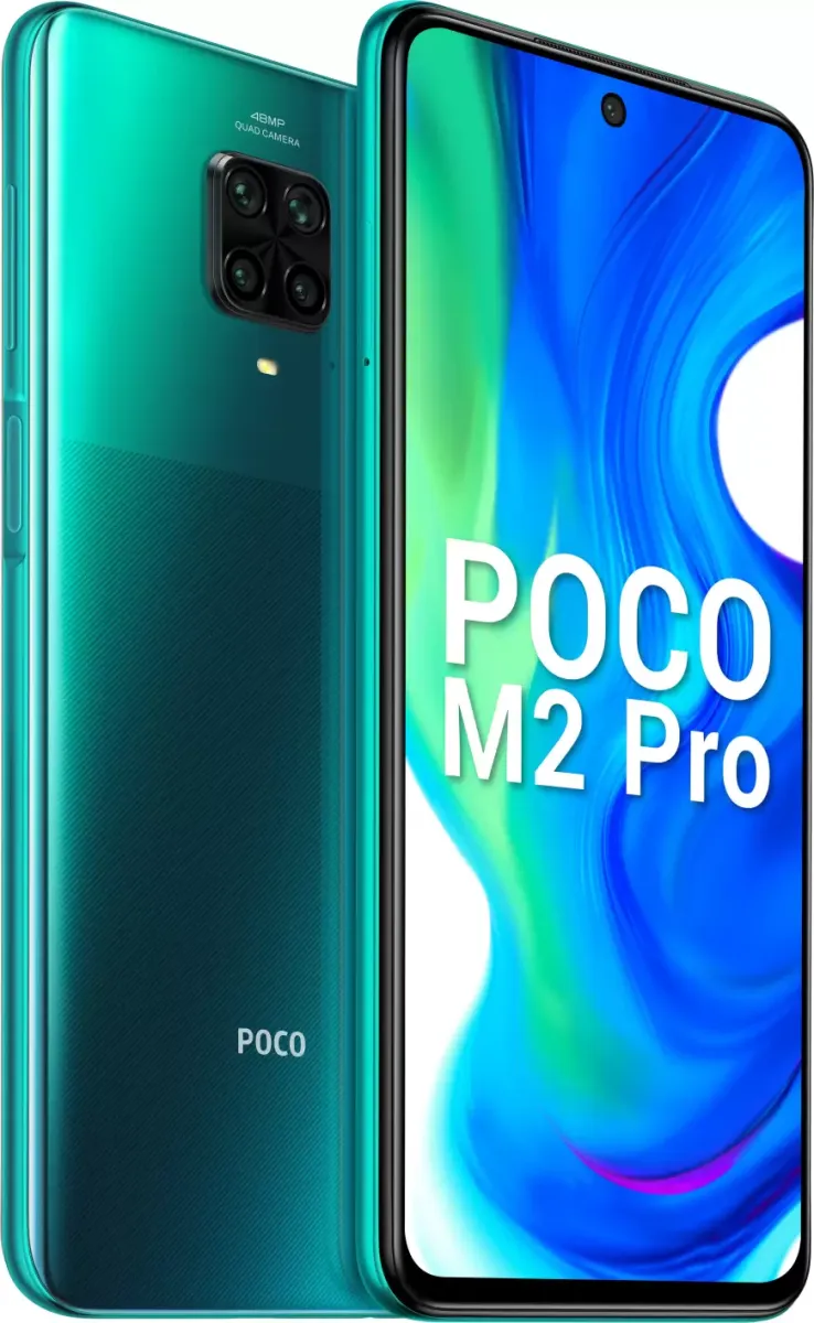 The POCO M2 Pro is a Smartphone. Brand: Poco. RAM: 4 GB. Storage: 64 GB. Battery: 5000 mAh, Li-Po Battery. OS: Android v10.0, upgradable to v11.