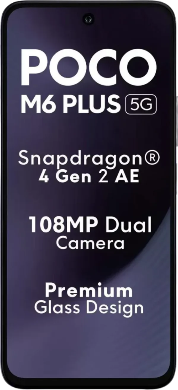 The Poco M6 Plus 5G is a Smartphone. Brand: Poco. RAM: 8 GB. Storage: 128 GB. Battery: 5030 mAh, Li-Po Battery. OS: Android v14.