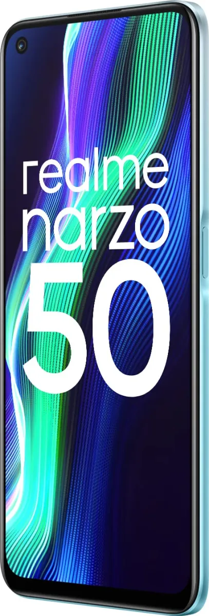 The Realme Narzo 50 is a Smartphone. Brand: Realme. RAM: 4 GB. Storage: 64 GB. Battery: 5000 mAh, Li-Po Battery. OS: Android v11.