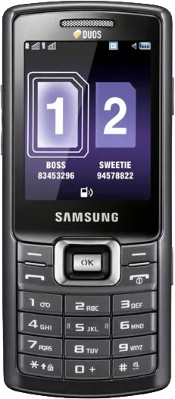 The Samsung C5212 Duos is a Smartphone. Brand: Samsung. Storage: 60 MB. Battery: 1000 mAh, Li-ion Battery.