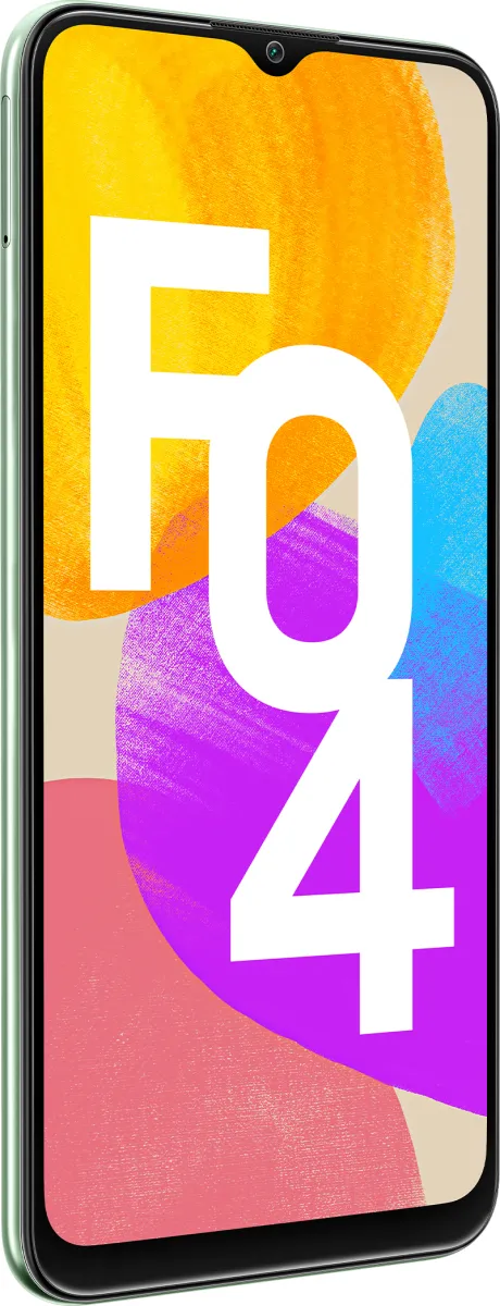 The Samsung Galaxy F04 is a Smartphone. Brand: Samsung. RAM: 4 GB. Storage: 64 GB. Battery: 5000 mAh, Li-Po Battery. OS: Android v12.