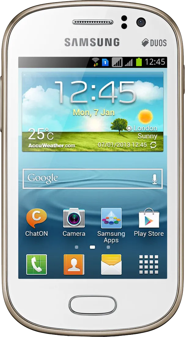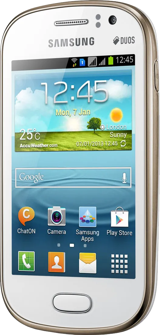 The Samsung Galaxy Fame Duos S6812 is a Smartphone. Brand: Samsung. RAM: 512 MB. Storage: 4 GB. Battery: 1300 mAh, Li-ion Battery. OS: Android v4.1.2 (Jelly Bean).