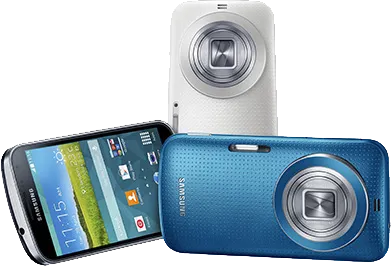 The Samsung Galaxy K zoom (S5 zoom) is a Smartphone. Brand: Samsung. RAM: 2 GB. Storage: 8 GB. Battery: 2430 mAh, Li-ion Battery. OS: Android v4.4.2 (KitKat).