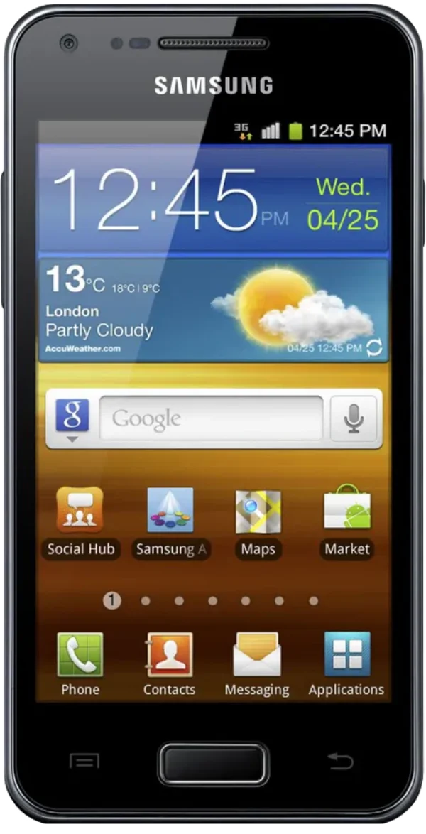 The Samsung Galaxy S Advance I9070 is a Smartphone. Brand: Samsung. RAM: 768 MB. Storage: 16 GB. Battery: 1500 mAh, Li-ion Battery. OS: Android v2.3.6 (Gingerbread), upgradable to v4.1.2 (Jelly Bean).