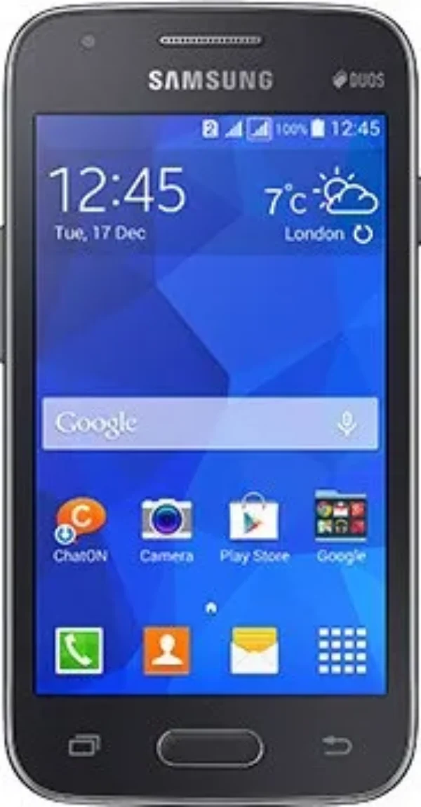 The Samsung Galaxy S Duos 3 is a Smartphone. Brand: Samsung. RAM: 512 MB. Storage: 4 GB. Battery: 1500 mAh, Li-ion Battery. OS: Android v4.4.2 (KitKat).