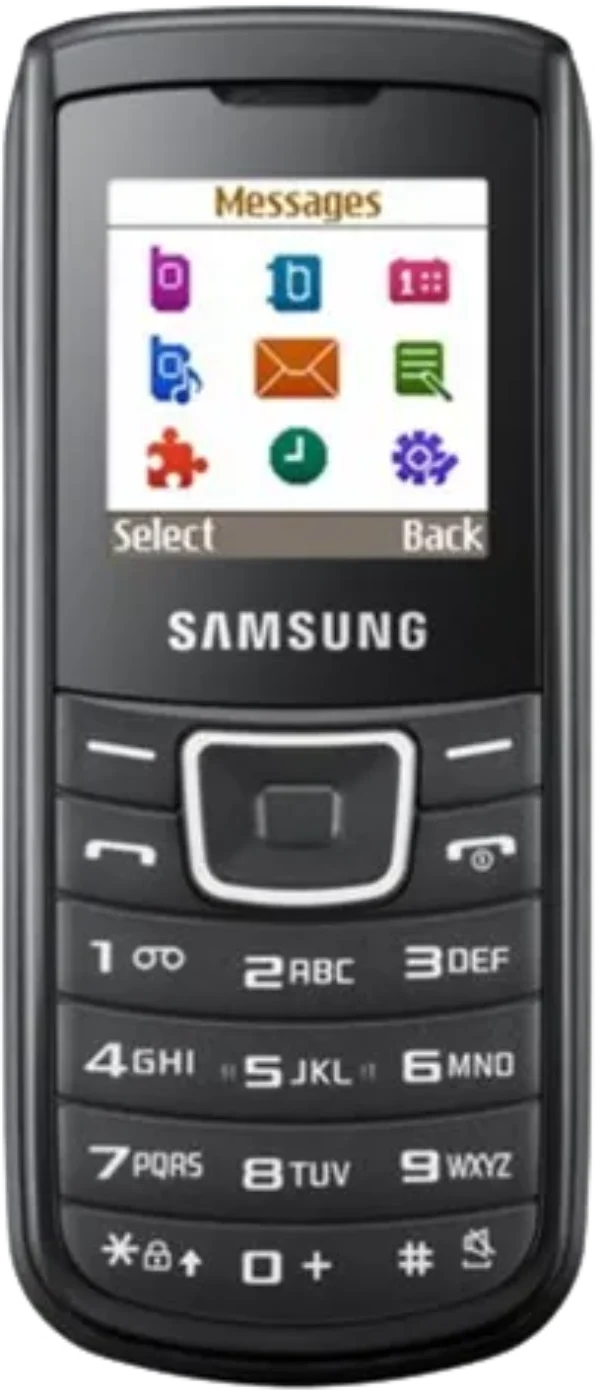 The Samsung Guru E1100 is a Smartphone. Brand: Samsung. Storage: 1 MB. Battery: 750 mAh, Li-ion Battery.
