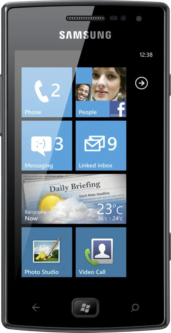 The Samsung Omnia W I8350 is a Smartphone. Brand: Samsung. RAM: 512 MB. Storage: 8 GB. Battery: 1500 mAh, Li-ion Battery. OS: Windows Phone v7.5.