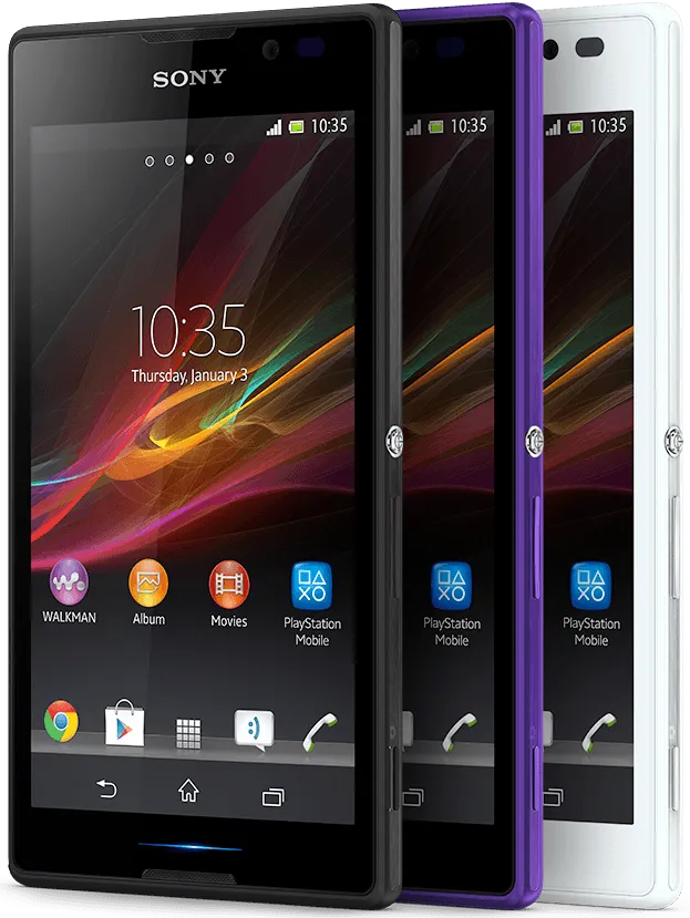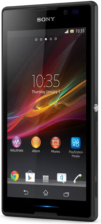 The Sony Xperia C is a Smartphone. Brand: Sony. RAM: 1 GB. Storage: 4 GB. Battery: 2330 mAh, Li-ion Battery. OS: Android v4.2.2 (Jelly Bean).