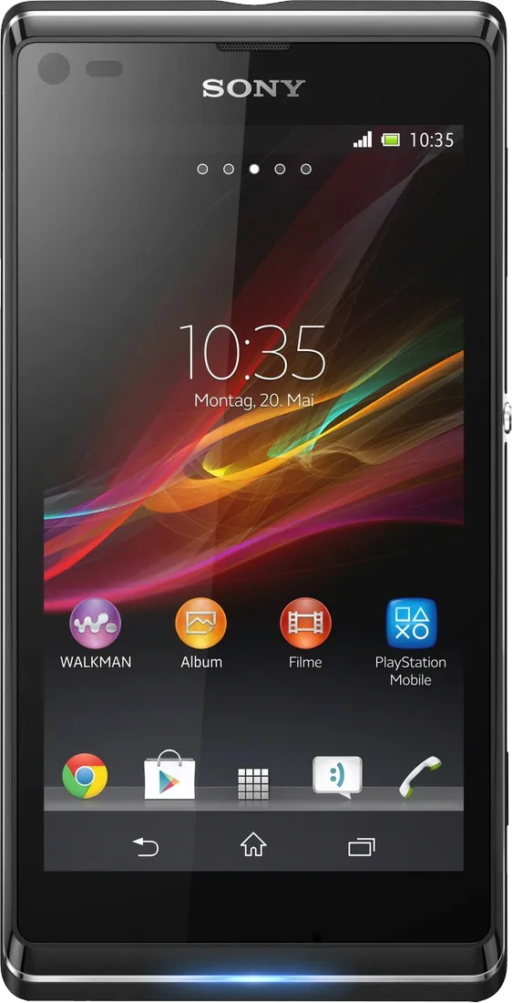 The Sony Xperia L is a Smartphone. Brand: Sony. RAM: 1 GB. Storage: 8 GB. Battery: 1750 mAh, Li-ion Battery. OS: Android v4.1 (Jelly Bean).
