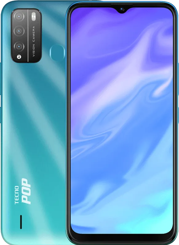 The Tecno Pop 5X is a Smartphone. Brand: Tecno. RAM: 2 GB. Storage: 32 GB. Battery: 4000 mAh, Li-ion Battery. OS: Android v10.