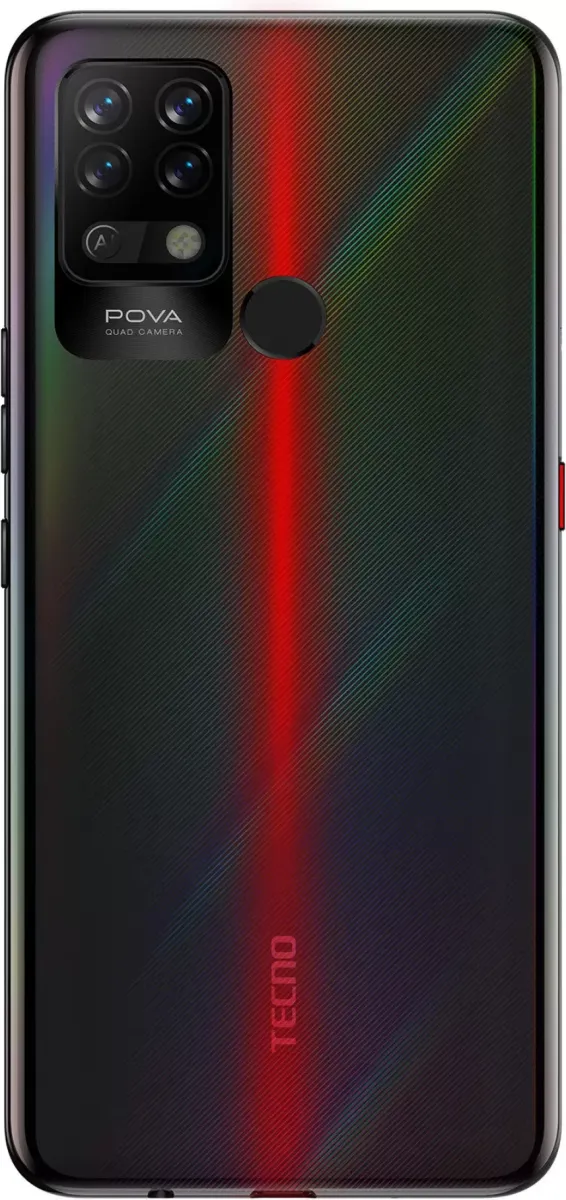 The Tecno Pova is a Smartphone. Brand: Tecno. RAM: 4 GB. Storage: 64 GB. Battery: 6000 mAh. OS: Android v10.