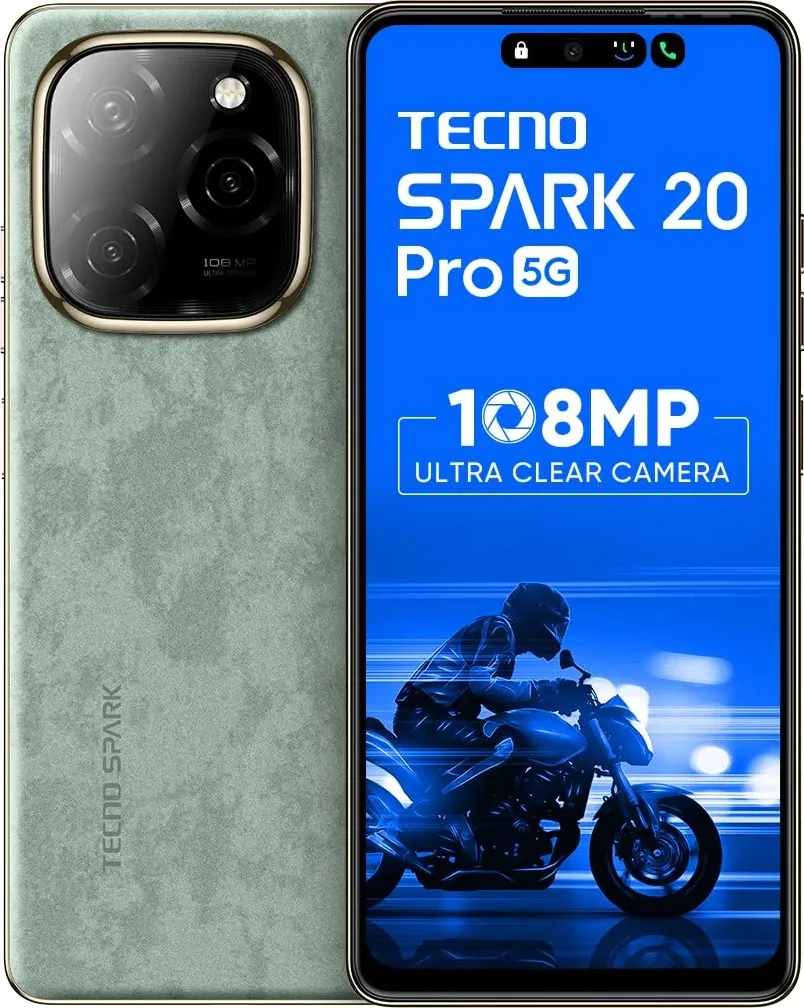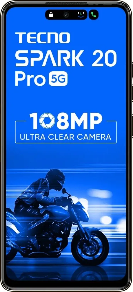 The Tecno Spark 20 Pro 5G is a Smartphone. Brand: Tecno. RAM: 8 GB. Storage: 256 GB. Battery: 5000 mAh, Li-Po Battery. OS: Android v14.