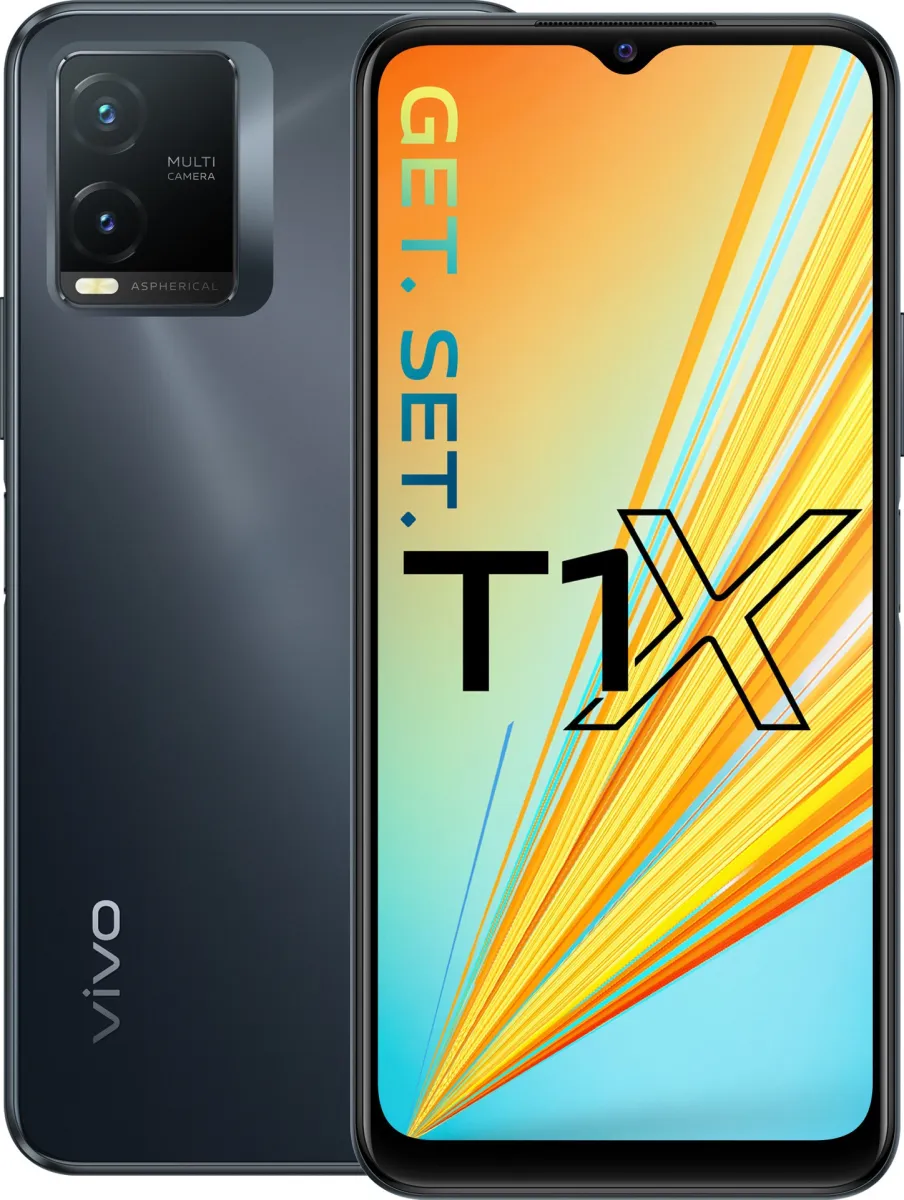 The Vivo T1x is a Smartphone. Brand: Vivo. RAM: 6 GB. Storage: 128 GB. Battery: 5000 mAh, Li-Po Battery. OS: Android v12.