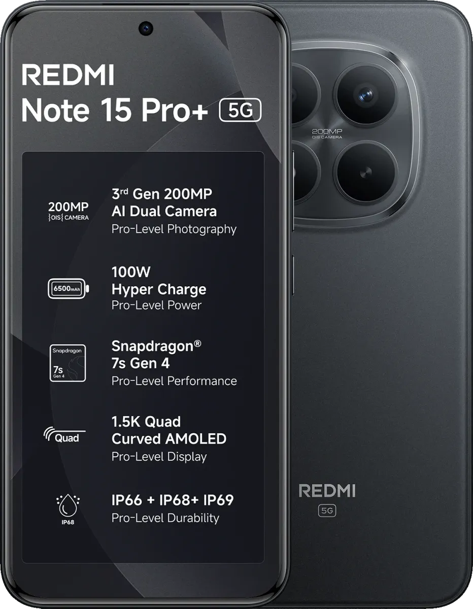 The Xiaomi Redmi Note 15 Pro Plus is a Smartphone. Brand: Xiaomi. RAM: 8 GB. Storage: 256 GB. Battery: 6500 mAh, Silicon-Carbon Battery Battery. OS: Android v15.
